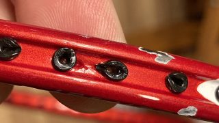 バドミントンのグロメットは消耗品です。ただ、普通の量販店などで正直なところグロメットチェックをしてくれるところは少ないと思います。良心的なラケットショップが近くにない場合はガットが切れたら自分で切れたストリングを抜き取ってフレーム...